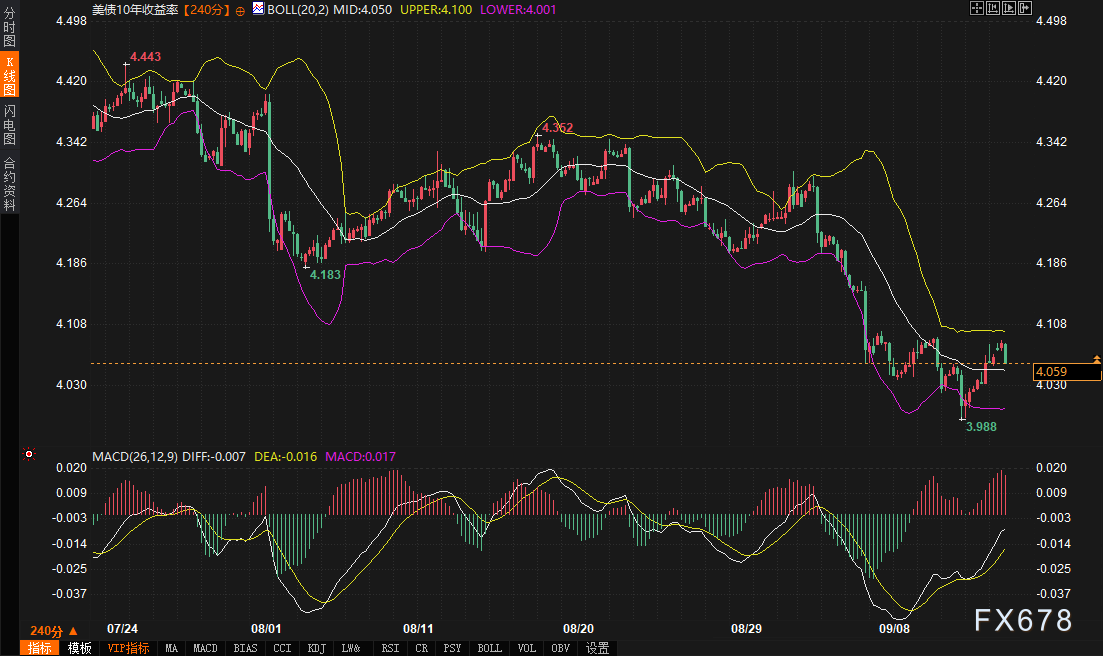 技术面进一步印证这一拉锯。10年期美债收益率在240分钟图上,已跌破布林带中轨4.050%,逼近下轨4.001%,显示短期空头主导。MACD指标的DIFF线位于-0.007,DEA线为-0.016,而MACD柱状线微升至0.017,暗示潜在的底部背离迹象,尽管整体趋势仍向下。前高4.183%转为强劲阻力,而近期低点3.988%提供关键支撑。日内焦点集中在3.98%-4.01%的支撑区间,若有效站稳,可能引发反弹测试4.05%-4.18%的阻力带;反之,突破下轨或加速下行,放大市场对宽松预期的押注。结合上周CPI数据后的首次测试,4%水平已证明其枢纽作用,交易者需密切追踪美联储决议前后的人气变化。