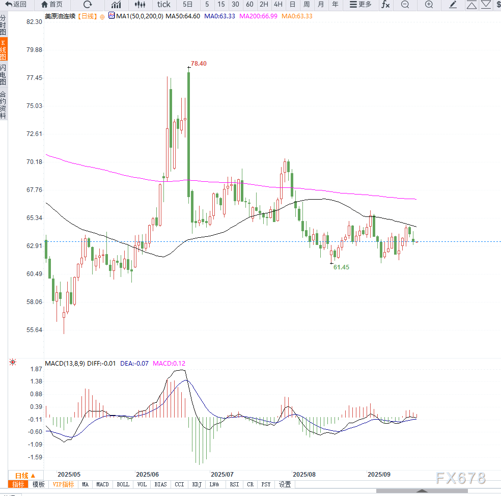 若突破64.50美元,有望进一步测试66美元压力;但若跌破62.80美元,则可能打开下行空间至61.50美元。整体来看,走势偏弱,震荡格局延续。