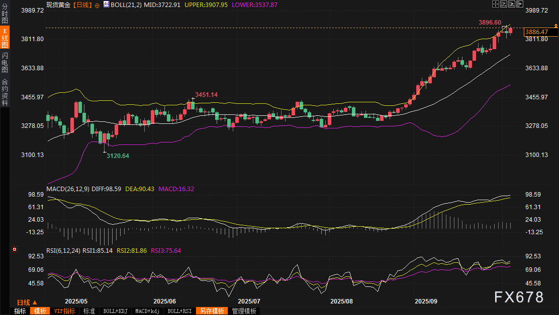 Bannockburn全球外汇公司董事总经理Marc Chandler提到,美国停摆、欧洲对俄罗斯储备的讨论以及混合战争,都支撑市场情绪,短期黄金支撑位在3800美元左右,4000美元已近在咫尺。全球央行和投资者认识到法定货币管理不善的风险,继续买入黄金,推动其脱离美元的阴影。